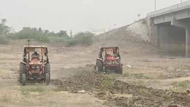 जमिनीत पाणी मुरविण्यासाठी माण नदीपात्रात नांगरणी