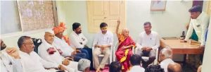 सांगोल्याच्या उमेदवारीसाठी स्वर्गीय गणपतरावांचे नातू डॉ. अनिकेत व डॉ. बाबासाहेब या दोन भावंडात सुप्त संघर्ष सुरू होता. हा वाद संपवण्यासाठी अनेक दिग्गजांनी प्रयत्न केले होते. मात्र, हा दोघांमधील वाद मिटत नव्हता. दरम्यान हा वाद संपण्यास आज शेवटी या दोघांची आजी स्व. गणपतराव देशमुख यांच्या पत्नी श्रीमती रतनबाई देशमुख यांनी मध्यस्थी केली. त्यानंतर झालेल्या बैठकीत दोघांचे मनोमिलन घडवून आणले. यावेळी शेतकरी कामगार पक्षाचे सर्व वरिष्ठ पदाधिकारी उपस्थित होते. स्वर्गीय गणपतराव देशमुख यांच्याच घरात ही छोटी काही बैठक थोड्या वेळापूर्वी संपन्न होऊन श्रीमती रतनबाई यांनी दोघातले वाद संपवलेे. आता उद्या होणाऱ्या मेळाव्यात शेतकरी कामगार पक्ष एक संघरतीने एकत्रित येत असून सांगोला विधानसभा पूर्ण ताकतीने लढवण्याची तयारी करण्यात आली आहे.