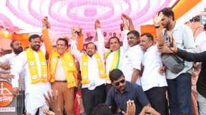 चौकट: 253 सांगोला विधानसभा मतदारसंघातील महायुतीचे अधिकृत उमेदवार आमदार शहाजीबापू पाटील यांच्या प्रचारार्थ अंबिकामातेचे दर्शन घेऊन माजी खासदार सिने अभिनेता गोविंदा यांनी केलेला रोडशो व छत्रपती शिवाजी महाराज चौक शिवसृष्टी सांगोला येथील विराट जाहीर सभा उपस्थितांना शहाजीबापूंच्या विजयासाठी प्रेरणा देणारी आहे. यावेळी या सभेसाठी हजारोंच्या संख्येने मतदार बंधू -भगिनी उपस्थित होते. गोविंदा यांच्या भाषणाच्यावेळी मुस्लिम समाज बांधवांचा नमाज चालू असताना त्यांनी आपले भाषण थांबवून प्रार्थनेला, नामस्मरनाला प्राधान्य दिले नंतर भाषण सुरू ठेवले या ठिकाणी महाराष्ट्राच्या आदर्श संस्कृतीचे दर्शन घडल्याच्या प्रतिक्रिया व्यक्त झाल्या. या कार्यक्रमासाठी हजारोंच्या संख्येने मतदार बंधू -भगिनी, युवक वर्ग उपस्थित होता.