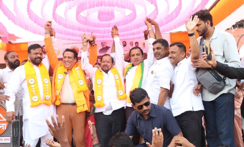 253 सांगोला विधानसभा मतदारसंघाचे महायुतीचे अधिकृत उमेदवार आमदार शहाजीबापू पाटील यांच्या प्रचारार्थ सांगोला शहरातील छत्रपती शिवाजी महाराज चौक, शिवसृष्टी येथे रविवार दिनांक 17 नोव्हेंबर 2024 रोजी आयोजित केलेल्या रोडशो, रॅली व जाहीर सभेप्रसंगी सिनेअभिनेता गोविंदा बोलत होते.
