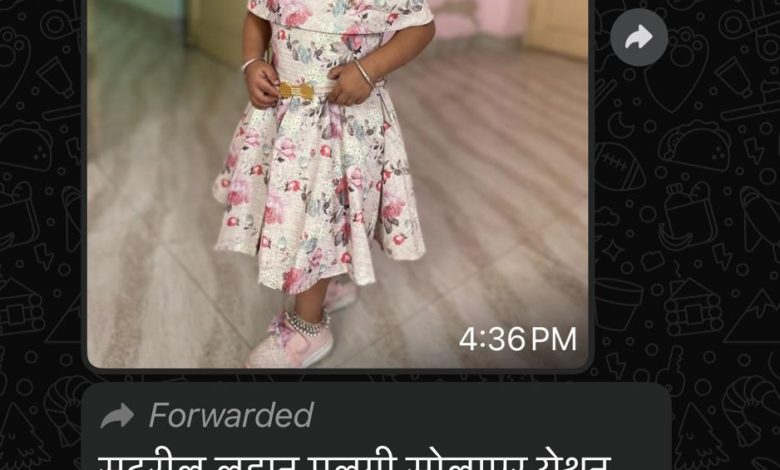 सोलापूर ग्रामीण पोलीस दलाच्या दमदार कामगिरीमुळे एका महीलेने पळवून आणलेली पाच वर्षाची चिमुकली सापडली !!