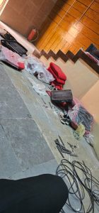 उद्घाटना आधीच मोडलेल्या खुर्च्या त्यावर कंत्राटदाराने फिरवलेला दुरुस्तीचा उतारा