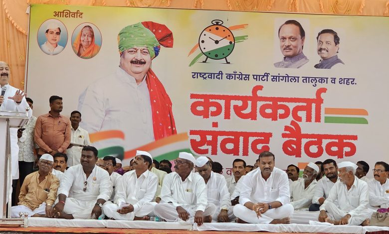आगामी निवडणुकीच्या तोंडावर सांगोला येथे राष्ट्रवादी काँग्रेस पार्टीने आयोजित केलेल्या कार्यकर्ता संवाद बैठकीस जाहीर सभेचे स्वरूप प्राप्त झाले. या बैठकीस चारुशीला काटकर, मधुमती साळुंखे, पंढरपूर तालुक्याचे युवा नेते समाधान काळे, यांच्यासह राष्ट्रवादी काँग्रेसचे शहराध्यक्ष तानाजी पाटील, माजी उपनगराध्यक्ष शिवाजी बनकर, शिवाजी कोळेकर, आर डी पवार, शहाजी साळुंखे, अनिल नागटिळक, विलास देठे, राजाभाऊ माने, नवनाथ माने, सुनील पाटील, बापू जाधव, संतोष साळुंखे, डॉ. सुधाकर महारनवर, अनंता घालमे, पिनु जाधव, चंद्रकांत शिंदे, आलमगीर मुल्ला, अनिल खडतरे, सतीश काशीद, विजय राऊत, चंदन होनराव, राम बाबर, चंद्रकांत कारंडे, सुनील साळुंखे, विजय पवार, चंद्रकांत चौगुले, अनिल मोटे, दिलीप मोटे, महादेव कांबळे, संतोष पाटील, शोभाताई खटकाळे, सदाशिव साळुंखे, सखुताई वाघमारे, शुभांगी पाटील, किसन गायकवाड, योगेश खटकाळे, जयवंत नागने, वसंत जरे, संभाजी हरिहर, रामदादा मिसाळ, राजाराम घागरे, विश्वनाथ चव्हाण, बाबुराव नागने, हरी सरगर, अजित गोडसे, अमोल सुरवसे आदी सह राष्ट्रवादी काँग्रेसचे पदाधिकारी व कार्यकर्ते उपस्थित होते.